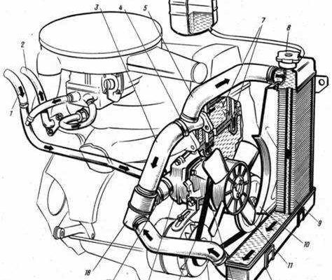 Одним из ключевых компонентов является радиатор, который отвечает за теплообмен. Вода, нагретая в двигателе, проходит через радиатор, где охлаждается воздухом, поступающим через решетку кузова. Важным элементом является и водяной насос, который обеспечивает циркуляцию охлаждающей жидкости по системе. Этот насос поддерживает поток жидкости, что предотвращает перегрев.